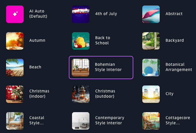 Rather than acting as a simple visual preset, a theme serves as structured creative input. Theme input is combined with product details, brand insights, and other relevant context to produce a range of prompts that are both visually themed and product-relevant.